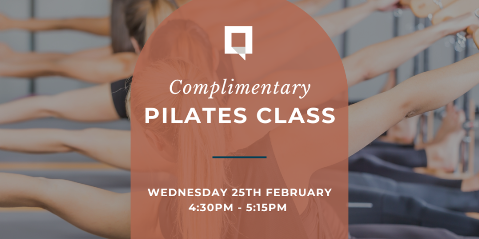 Join us for a 45-minute Pilates session on Wednesday 25th February, 4:30pm-5:15pm. This class is designed to improve posture, ease stress, and restore your energy, helping you end the day feeling refreshed and revitalised.